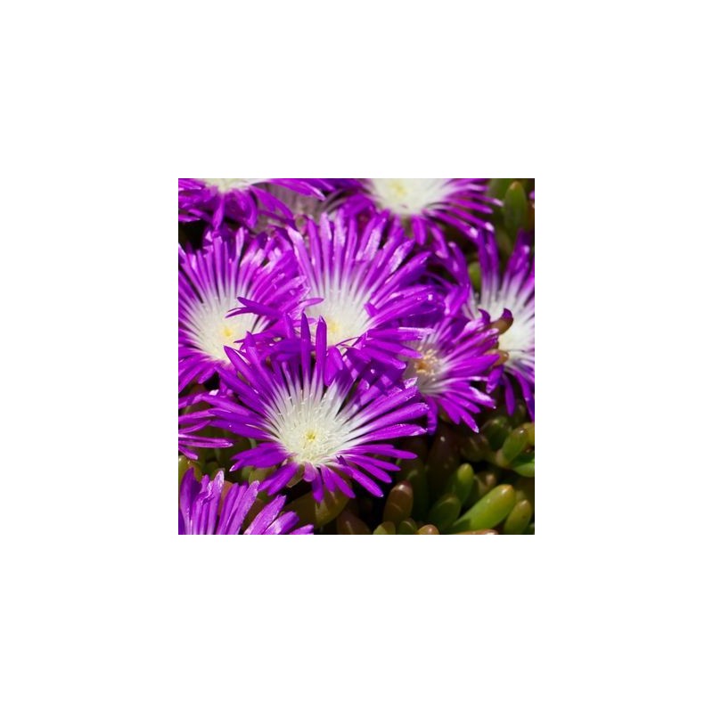 Le Delosperma Splendid ou pourpier est une vivace rampante, au feuillage succulente et aux fleurs de couleur violettes et blanches. Elle aime l'exposition plein soleil et nécessite peu d'entretien et d'arrosage.