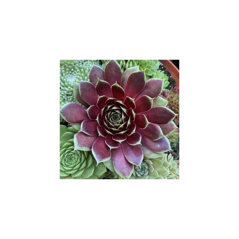 Le Sempervivum Colorockz 'Coconut Crystal' est une joubarbe remarquable, appréciée pour ses rosettes compactes et ses couleurs changeantes au fil des saisons. C'est une plante succulente très robuste et facile d'entretien, idéale pour les jardins de rocaille, les toits verts ou les pots.
