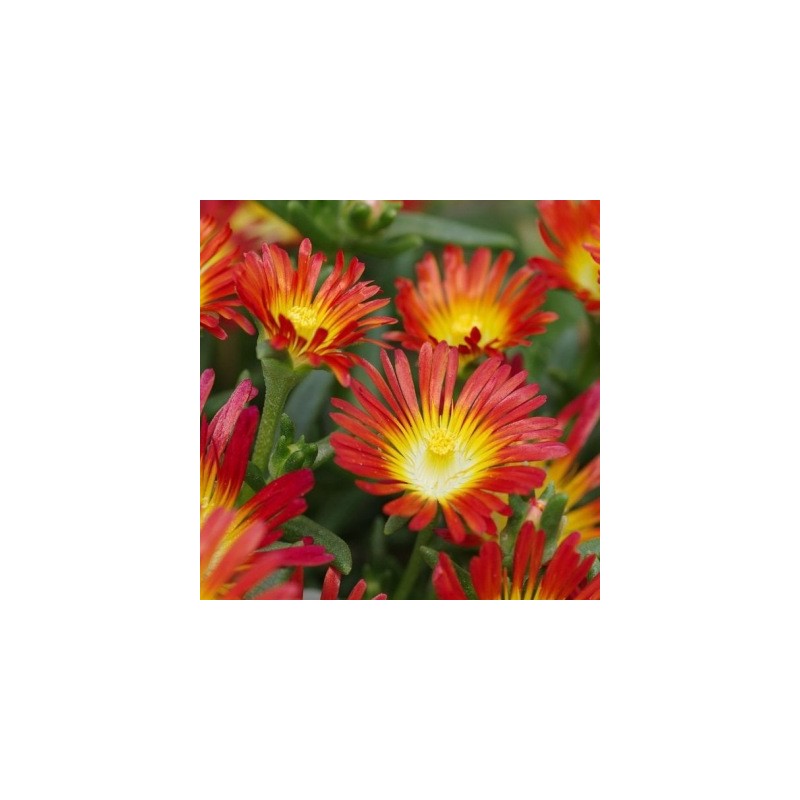 Le Delosperma Fire Wonder ou pourpier est une vivace rampante, au feuillage succulente et aux fleurs de couleur rouges orangées et jaunes. Elle aime l'exposition plein soleil et nécessite peu d'entretien et d'arrosage.