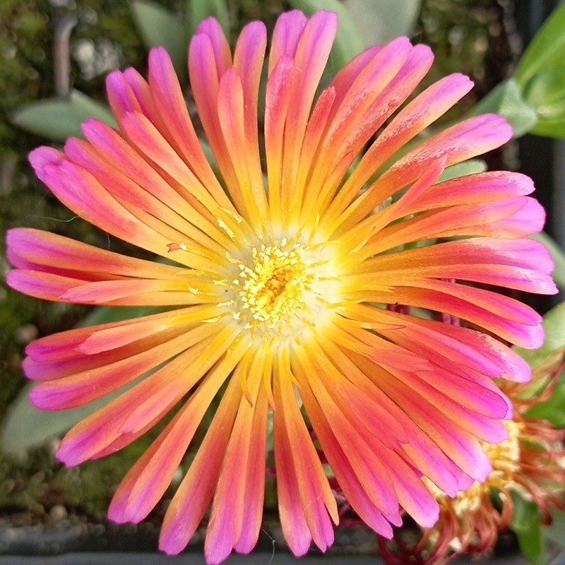 Le Delosperma Ocean Sunset Orange Glow ou pourpier est une vivace rampante, au feuillage succulente et aux fleurs de couleur roses et oranges à cœur jaune. Elle aime l'exposition plein soleil et nécessite peu d'entretien et d'arrosage.